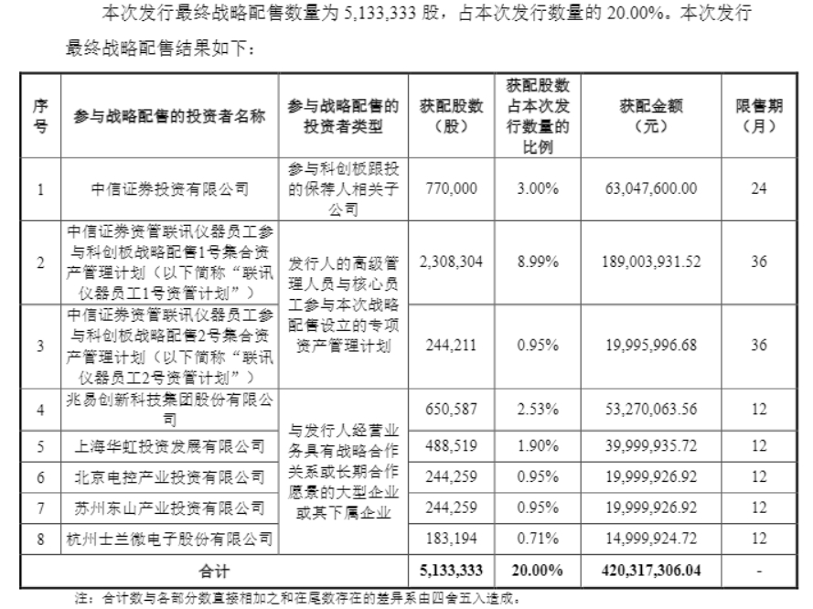 发行结果显示,此次IPO的战略配售便有多家产业龙头“真金白银”入场。