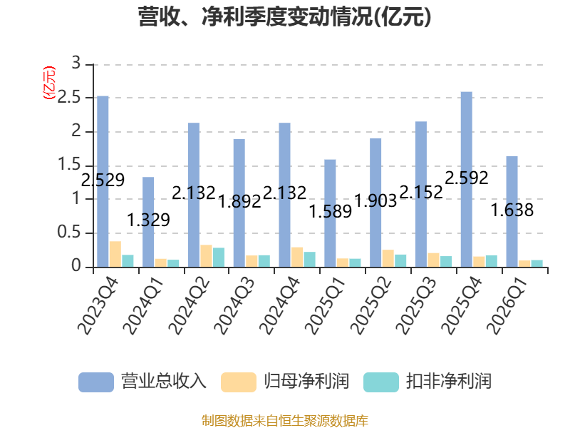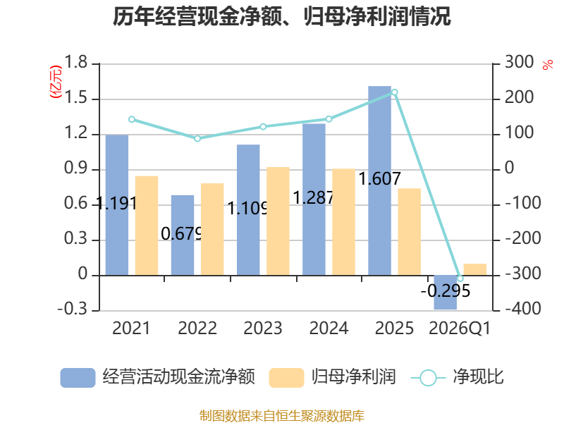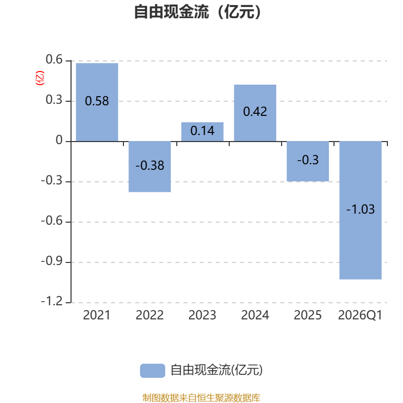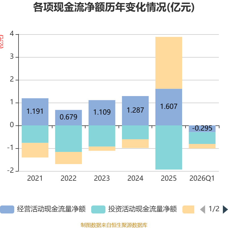 截至2026年一季度末,公司经营活动现金流净额为-2954.71万元,同比减少5869.57万元;筹资活动现金流净额-1980.28万元,同比减少3072.43万元;投资活动现金流净额-5191.42万元,上年同期为-7548.63万元。
