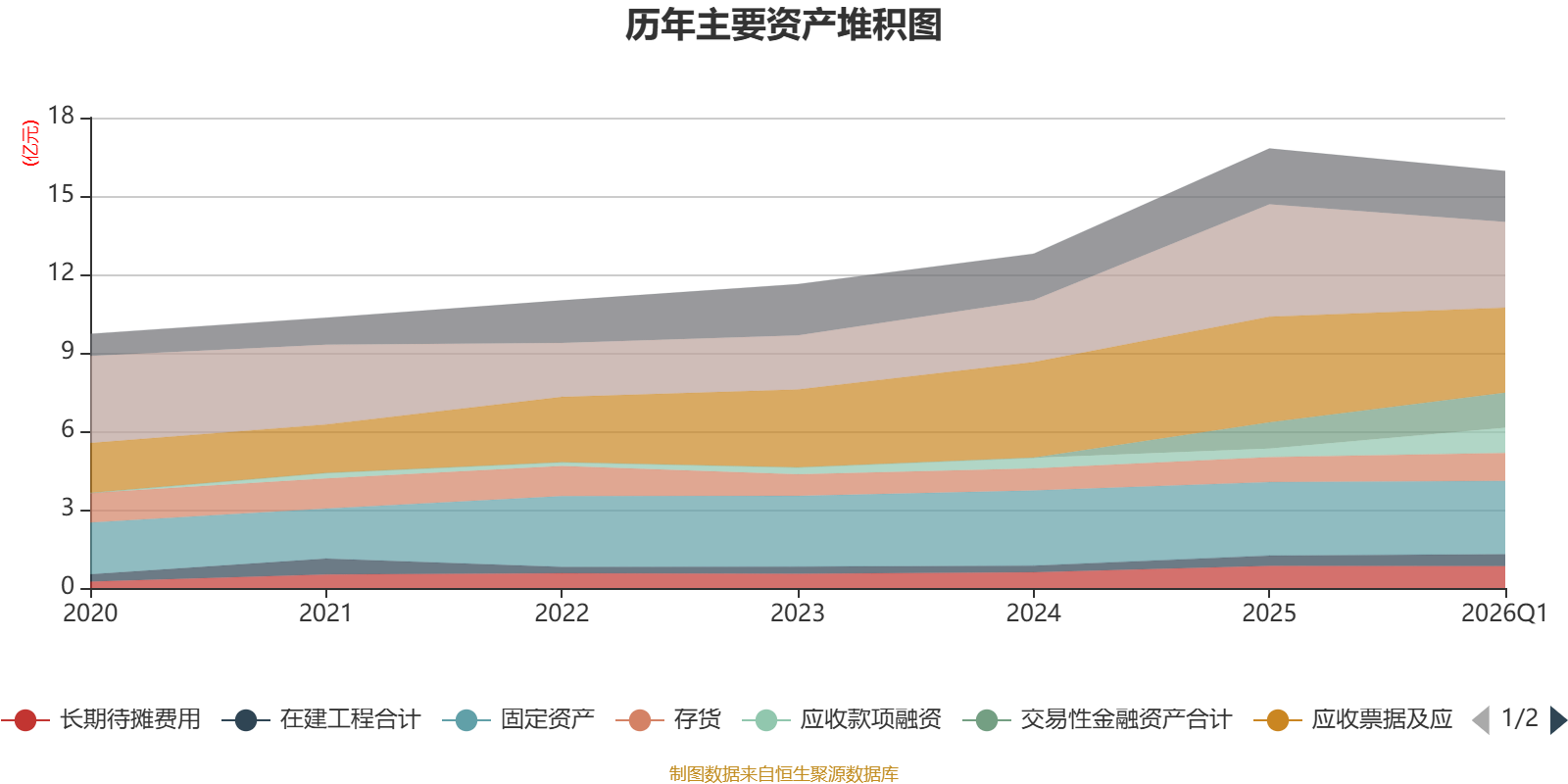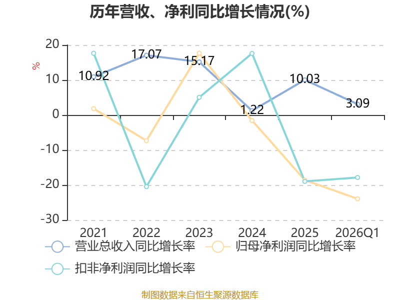 资产重大变化方面,截至2026年一季度末,公司货币资金较上年末减少23.94%,占公司总资产比重下降5.08个百分点;应收款项融资较上年末增加194.11%,占公司总资产比重上升4.07个百分点;应收票据及应收账款较上年末减少19.52%,占公司总资产比重下降3.65个百分点;交易性金融资产合计较上年末增加34.57%,占公司总资产比重上升2.49个百分点。