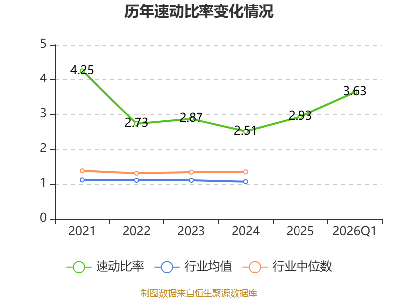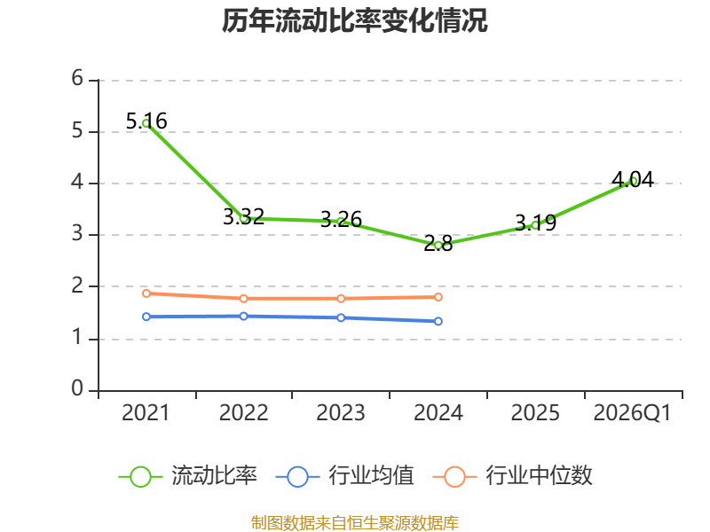 2026年第一季度,公司流动比率为4.04,速动比率为3.63。