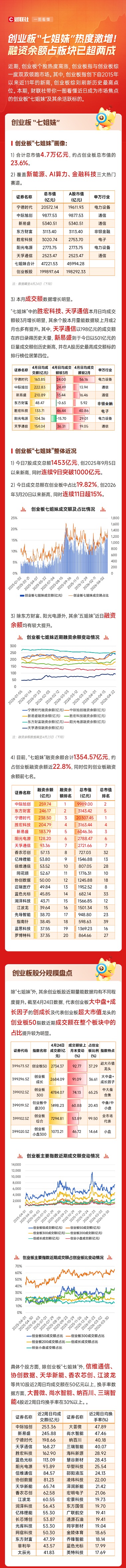 一图看懂创业板“七姐妹”:单日狂揽1453亿成交额创7个月新高 融资余额占全板块比例已超两成