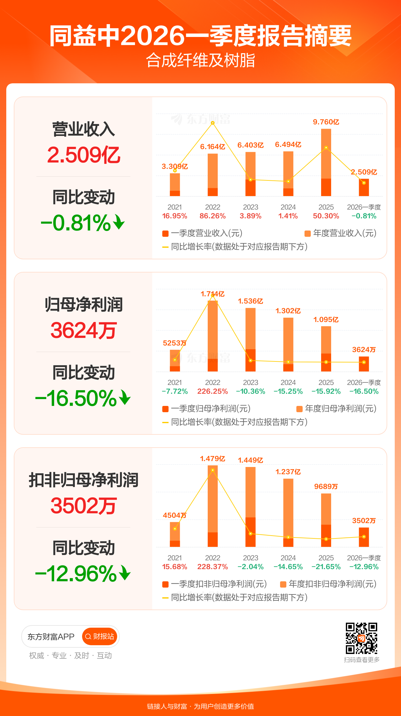 图解财报:同益中一季度归母净利润3624.11万元,同比减少16.50%