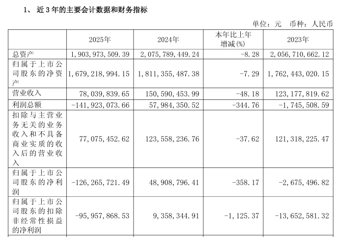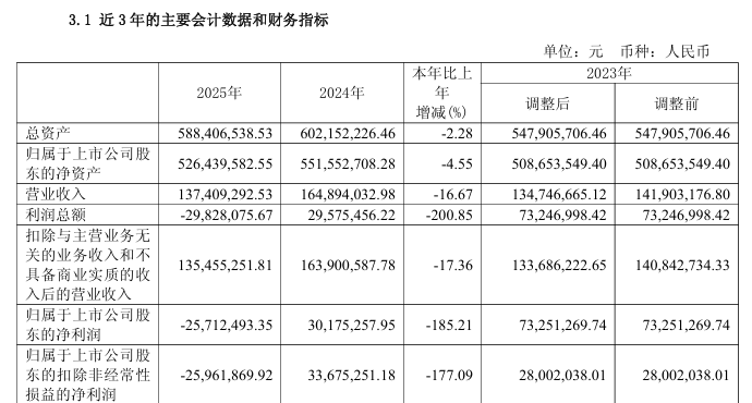 同日,柳化股份(600423)公告称,公司2025年实现营业收入1.37亿元,同比下降16.67%;归属于上市公司股东的净利润-2571.25万元,归属于上市公司股东的扣除非经常性损益后的净利润-2596.19万元。