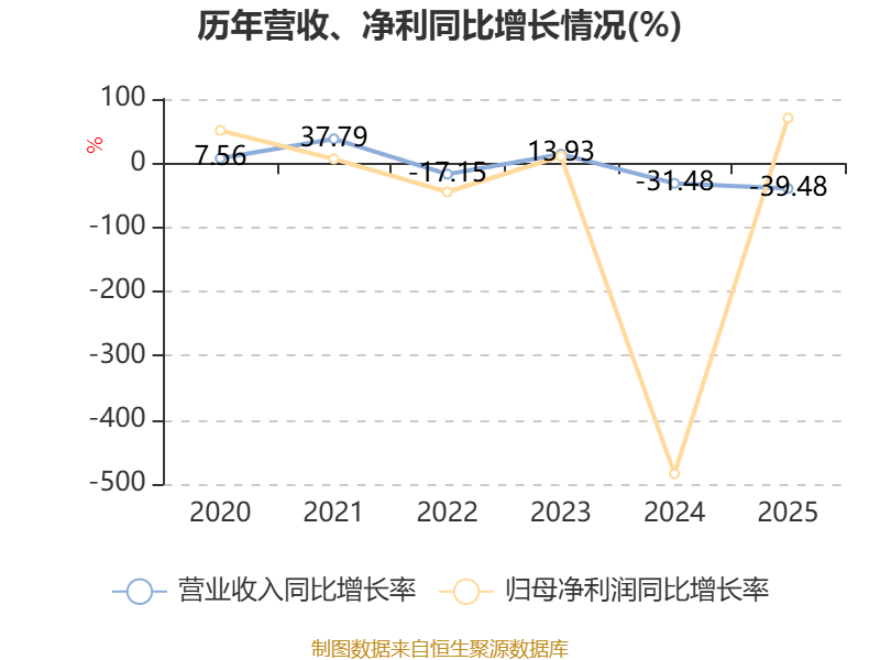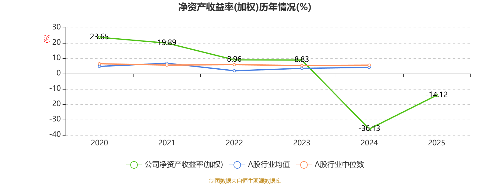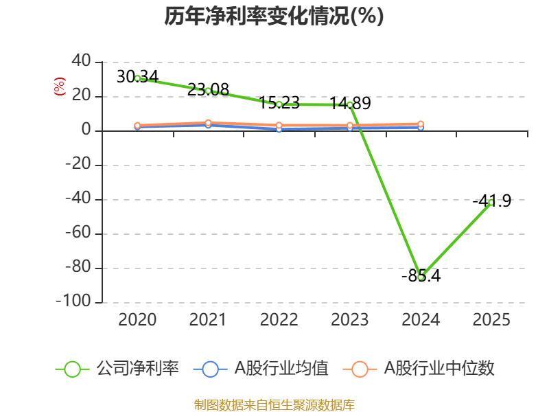 数据显示,2025年公司平均净资产收益率为-14.12%,较上年同期上升22.01个百分点。