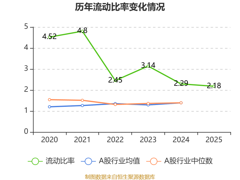 2025年,公司流动比率为2.18,速动比率为0.35。