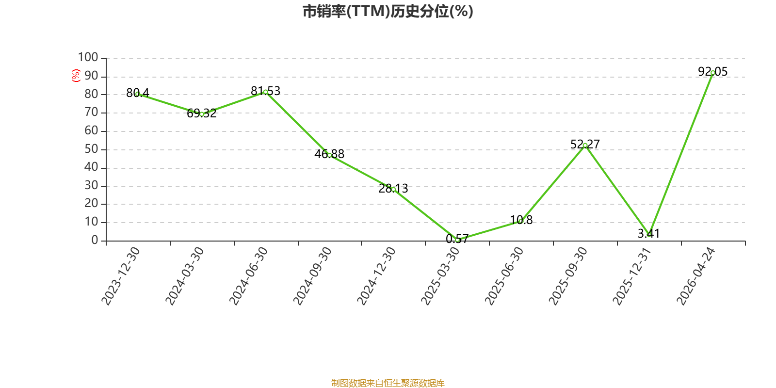 以4月24日收盘价计算,澜沧古茶目前市净率(TTM)约0.64倍,市销率(TTM)约1.85倍。