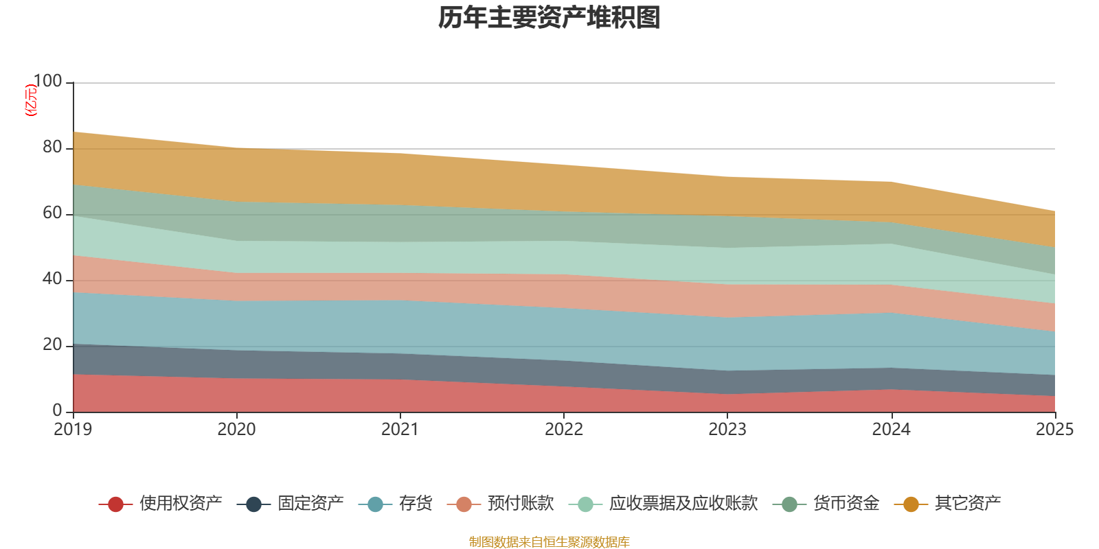 资产重大变化方面,截至2025年末,公司货币资金较上期末增加26.03%,占公司总资产比重上升4.15个百分点;应收票据及应收账款较上期末减少29.16%,占公司总资产比重下降3.35个百分点;存货较上期末减少21.08%,占公司总资产比重下降2.29个百分点;使用权资产较上期末减少30.11%,占公司总资产比重下降1.93个百分点。