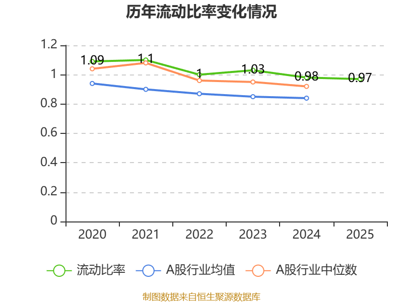 2025年,公司流动比率为0.97,速动比率为0.66。