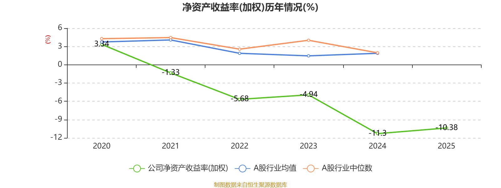 数据显示,2025年公司平均净资产收益率为-10.38%,较上年同期上升0.92个百分点。