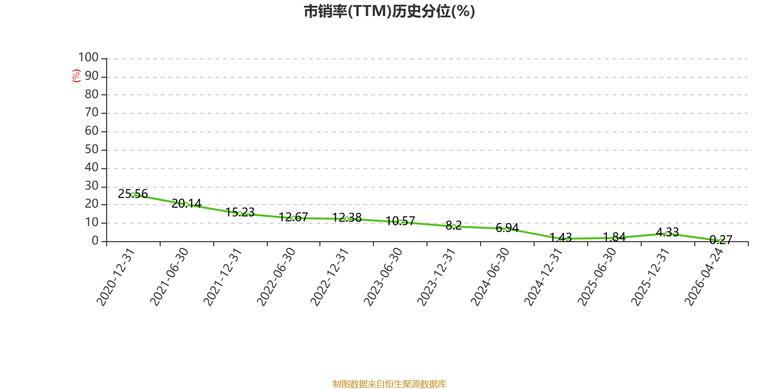 以4月24日收盘价计算,北京京客隆目前市净率(TTM)约0.1倍,市销率(TTM)约0.01倍。