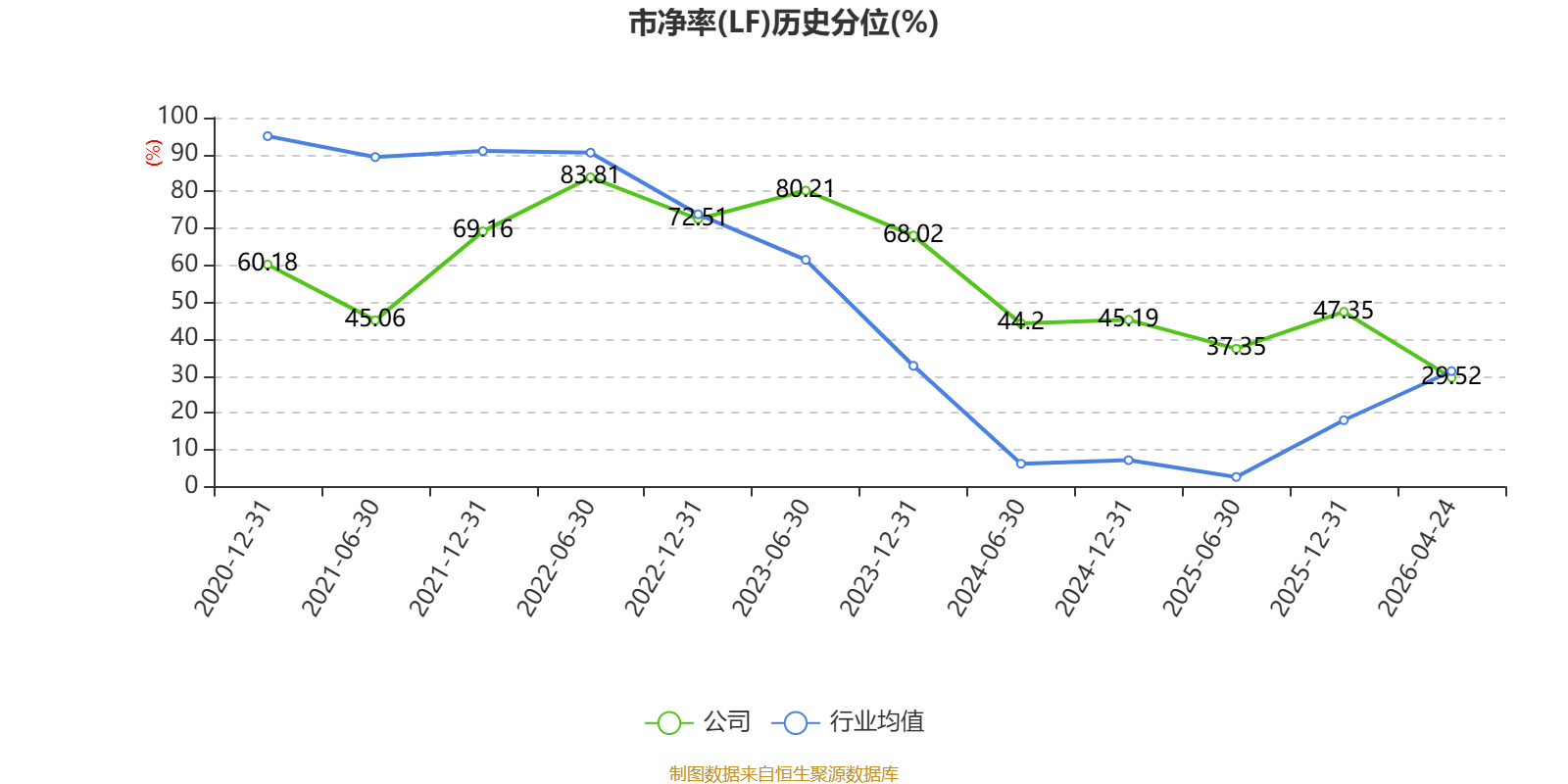 市盈率、市净率为负时,不显示当期分位数,会导致折线图中断。