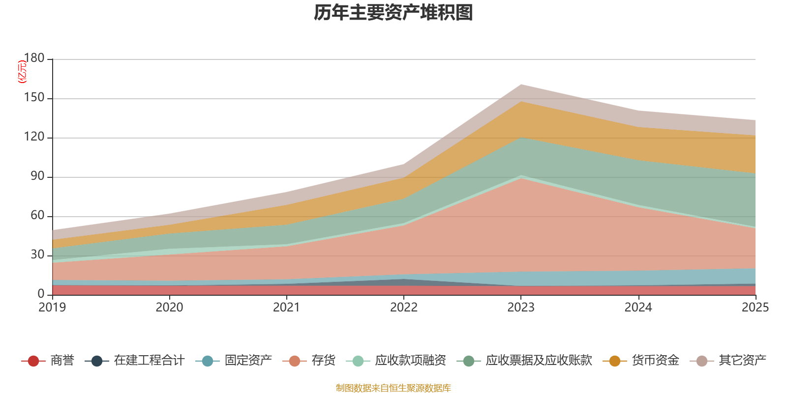 资产重大变化方面,截至2025年末,公司存货较上年末减少36.7%,占公司总资产比重下降11.42个百分点;应收票据及应收账款较上年末增加19.38%,占公司总资产比重上升6.31个百分点;货币资金较上年末增加14.24%,占公司总资产比重上升3.7个百分点;在建工程合计较上年末增加207.51%,占公司总资产比重上升1.01个百分点。