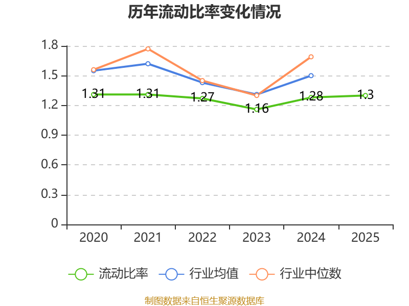 2025年,公司流动比率为1.3,速动比率为0.93。