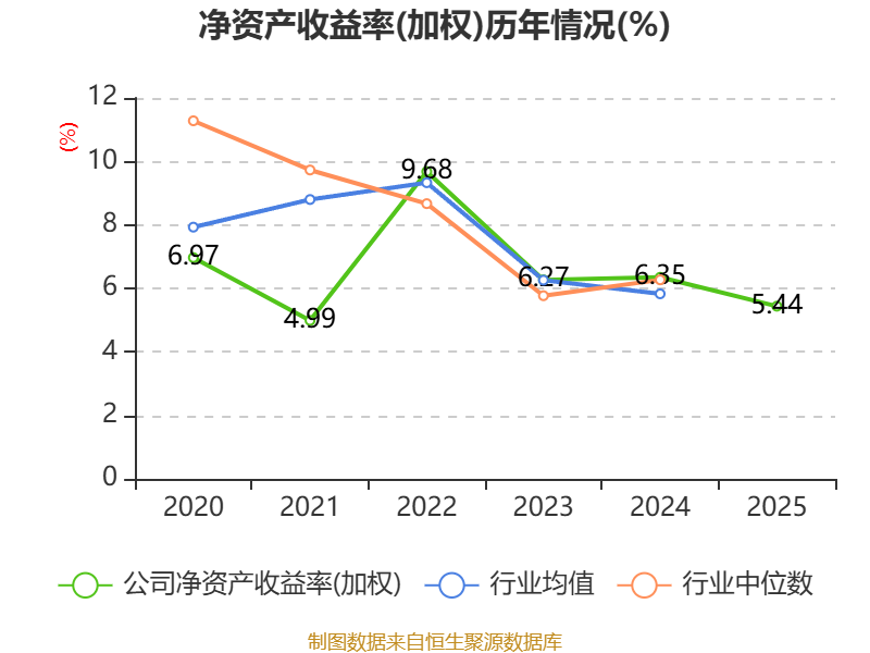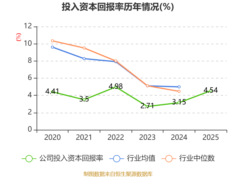 数据显示,2025年公司加权平均净资产收益率为5.44%,较上年同期下降0.91个百分点。公司2025年投入资本回报率为4.54%,较上年同期上升1.39个百分点。