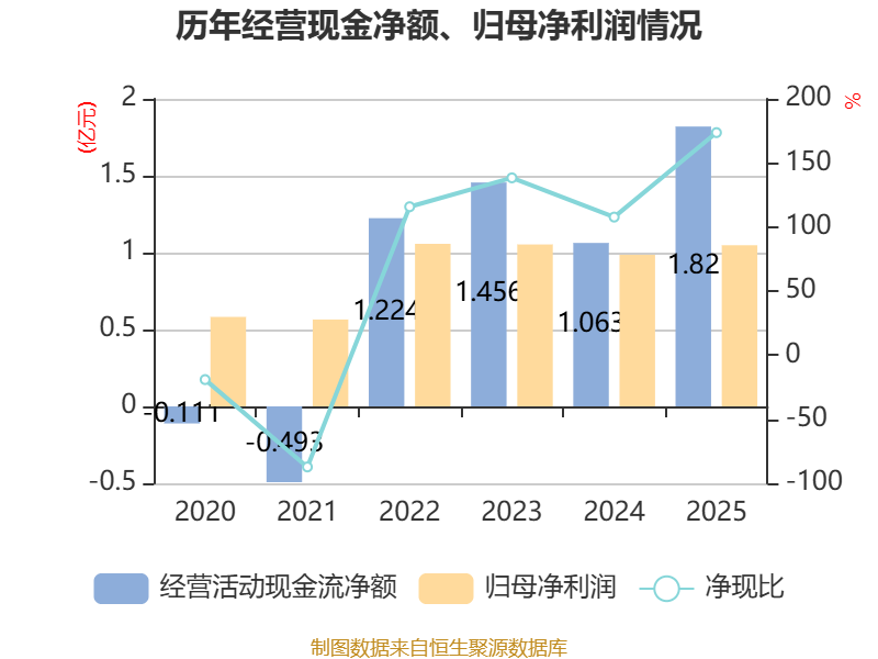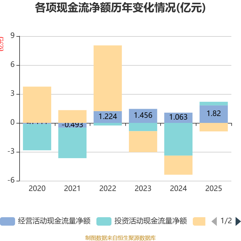 截至2025年,公司经营活动现金流净额为1.82亿元,同比增长71.29%;筹资活动现金流净额-8797.22万元,同比增加1.1亿元;投资活动现金流净额3716.36万元,上年同期为-3.39亿元。