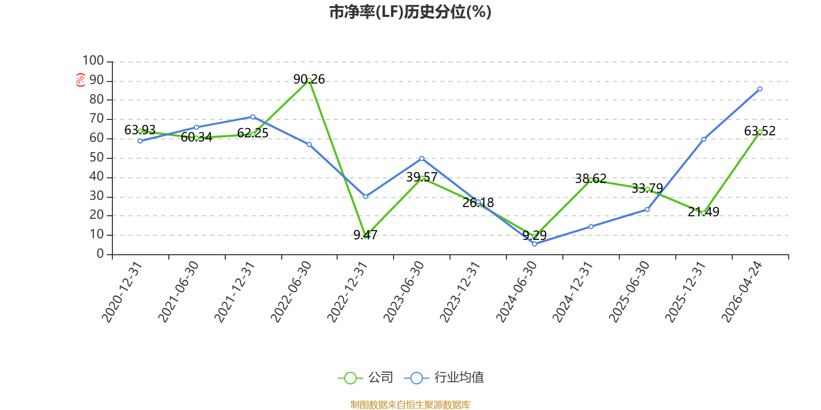 市盈率、市净率为负时,不显示当期分位数,会导致折线图中断。