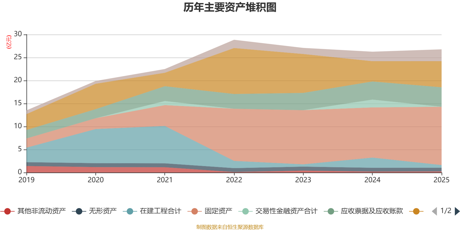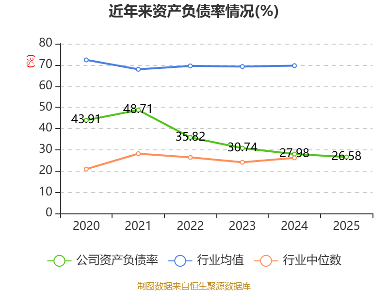 资产重大变化方面,截至2025年末,公司交易性金融资产合计较上年末减少100%,占公司总资产比重下降6.48个百分点;在建工程合计较上年末减少73.6%,占公司总资产比重下降6.26个百分点;固定资产较上年末增加16.14%,占公司总资产比重上升5.8个百分点;货币资金较上年末增加28.73%,占公司总资产比重上升4.41个百分点。