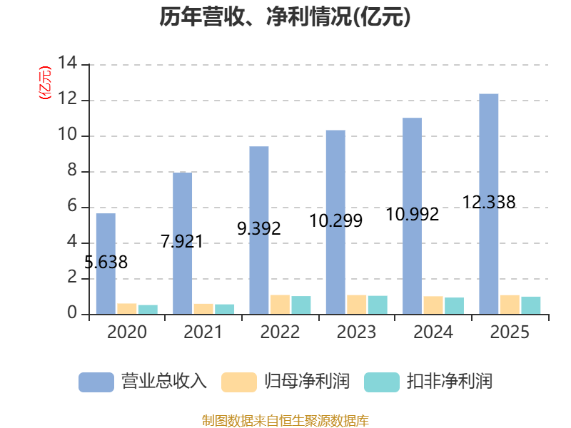 2025年全年,公司研发投入金额为6945.73万元,同比增长18.31%;研发投入占营业收入比例为5.63%,相比上年同期上升0.29个百分点。此外,公司全年研发投入资本化率为0%。
