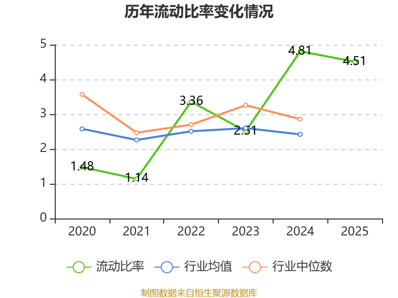 2025年,公司流动比率为4.51,速动比率为4.14。