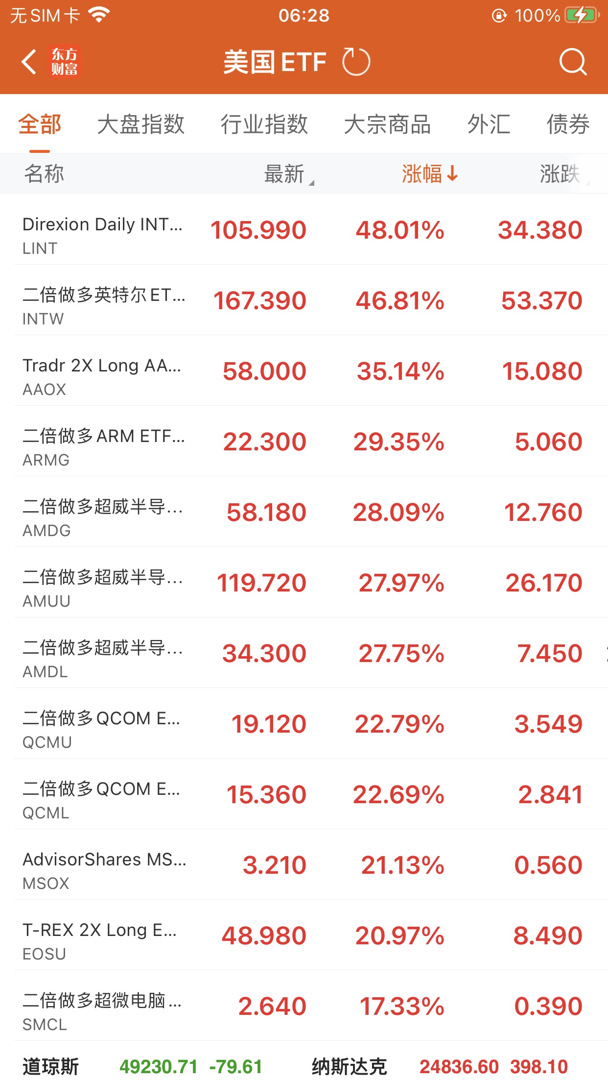 美股ETF追踪 | 大型科技股普涨 三倍做多英特尔ETF涨超48%