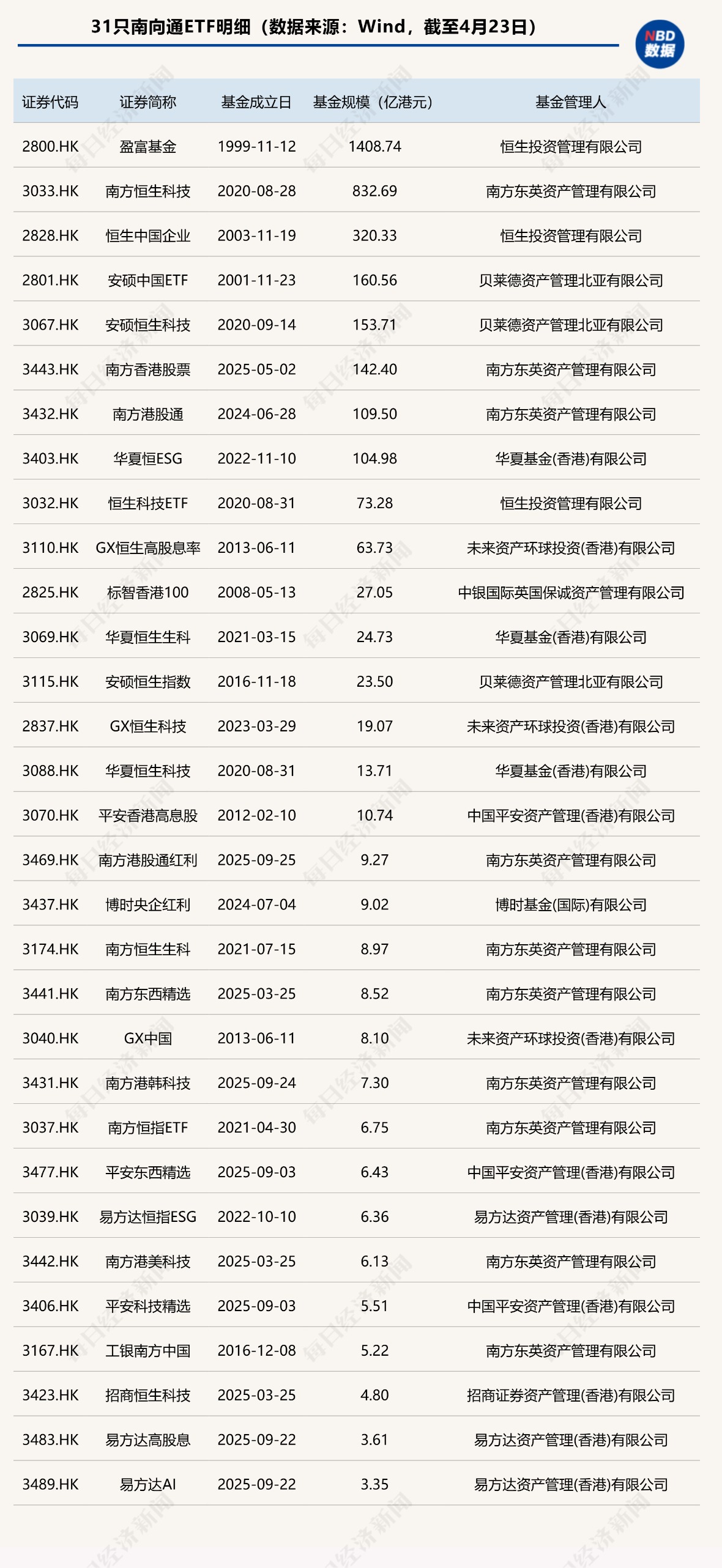 4月24日,沪深交易所公布“南向ETF通”最新扩容名单,自2026年5月6日起生效。扩容之后,南向ETF通产品数量将由原先的23只增至31只。