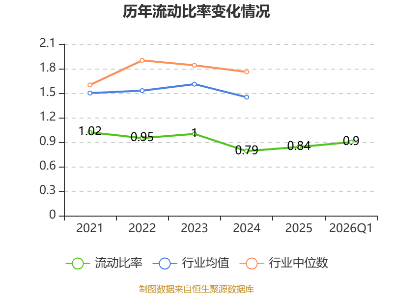 2026年第一季度,公司流动比率为0.9,速动比率为0.76。