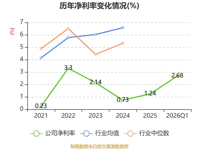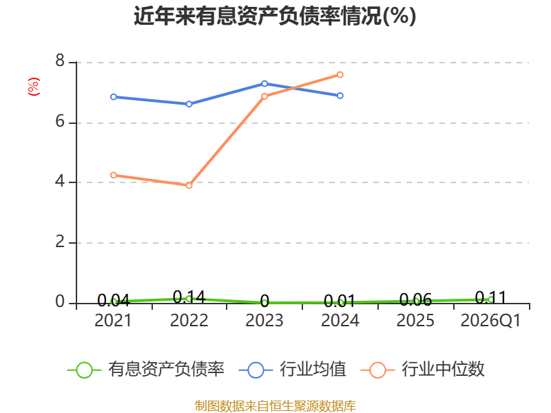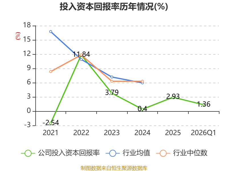 盈利能力方面, 2026年一季度公司加权平均净资产收益率为1.64%,同比下降0.3个百分点。公司2026年第一季度投入资本回报率为1.36%,较上年同期下降0.49个百分点。