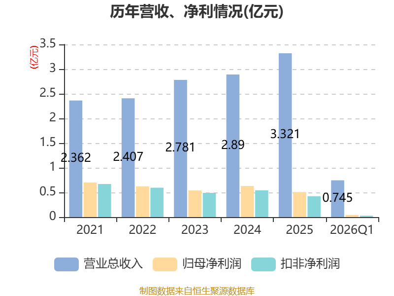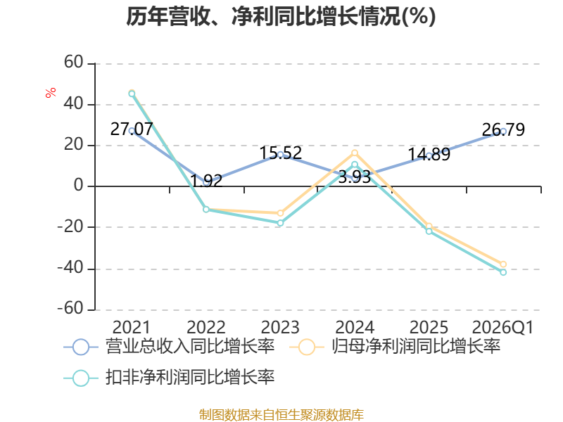一季报显示,2026年一季度末的公司十大流通股东中,新进股东为余笃定、翁枫,取代了上年末的国泰海通创新成长混合型发起式证券投资基金、沈剑青。在具体持股比例上,共赢10号员工参与战略配售集合资产管理计划、龚华、李晨岚、华夏平稳增长混合型证券投资基金持股有所下降。