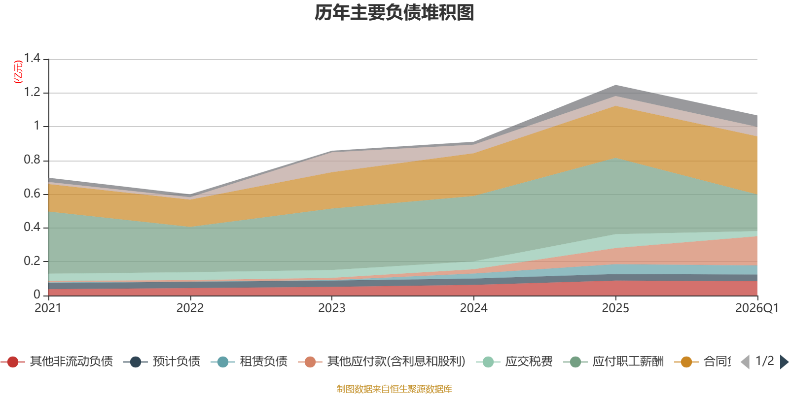 负债重大变化方面,截至2026年一季度末,公司应付职工薪酬较上年末减少52.04%,占公司总资产比重下降1.51个百分点;其他应付款(含利息和股利)较上年末增加80.14%,占公司总资产比重上升0.51个百分点;应交税费较上年末减少63.57%,占公司总资产比重下降0.34个百分点;合同负债较上年末增加11.67%,占公司总资产比重上升0.25个百分点。