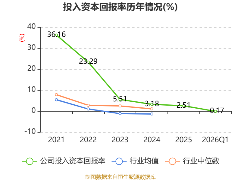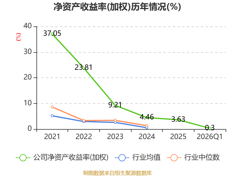 盈利能力方面, 2026年一季度公司加权平均净资产收益率为0.3%,同比下降0.19个百分点。公司2026年第一季度投入资本回报率为-0.17%,较上年同期下降0.35个百分点。