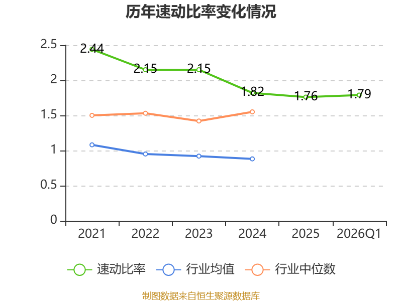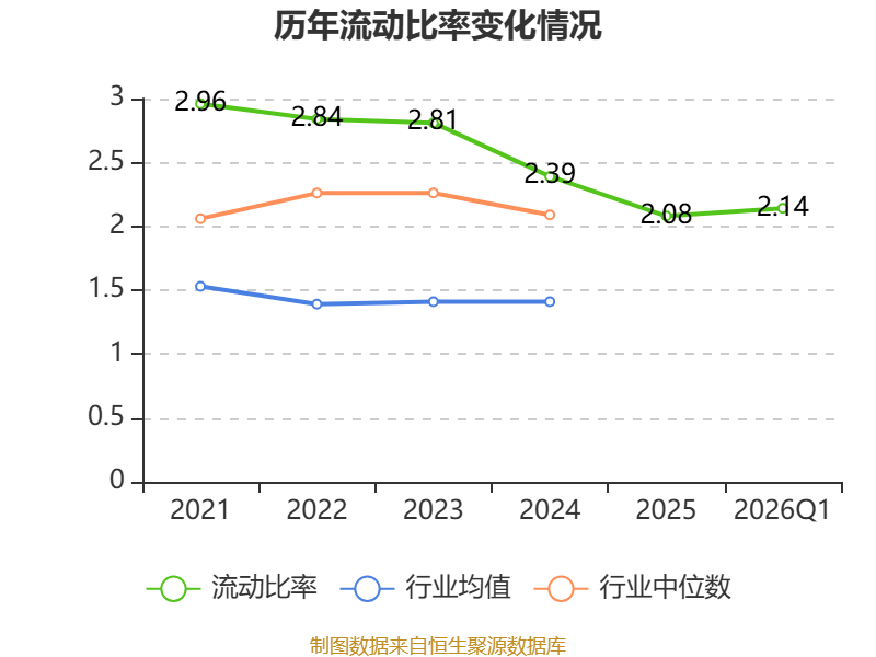 2026年第一季度,公司流动比率为2.14,速动比率为1.79。