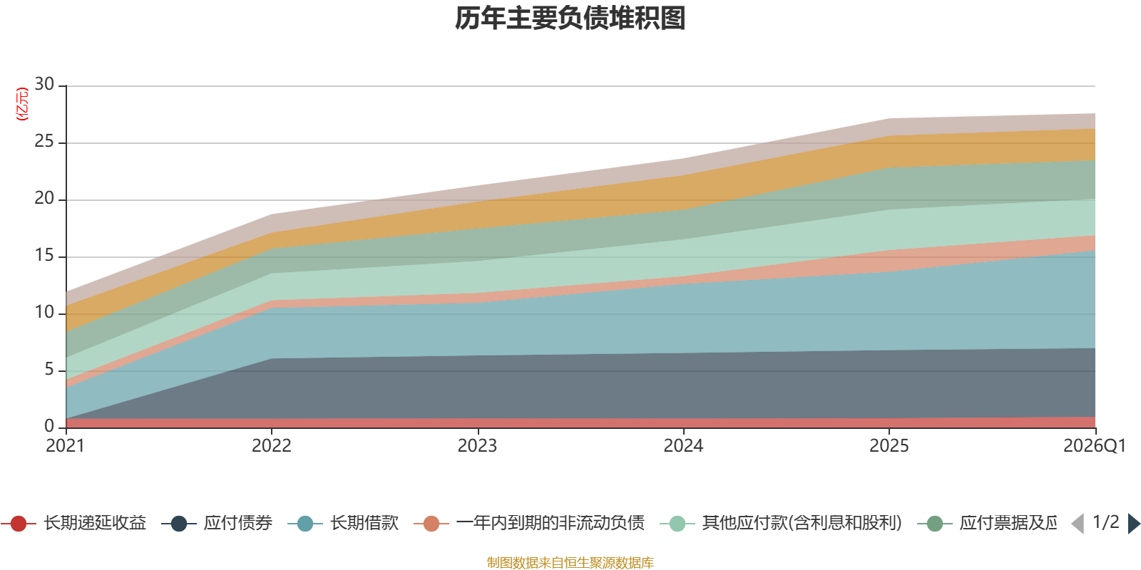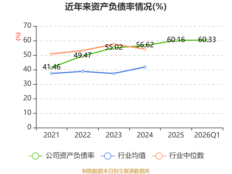 负债重大变化方面,截至2026年一季度末,公司长期借款较上年末增加24.66%,占公司总资产比重上升3.52个百分点;一年内到期的非流动负债较上年末减少30.45%,占公司总资产比重下降1.32个百分点;其他应付款(含利息和股利)较上年末减少9.4%,占公司总资产比重下降0.83个百分点;应付票据及应付账款较上年末减少8.73%,占公司总资产比重下降0.81个百分点。