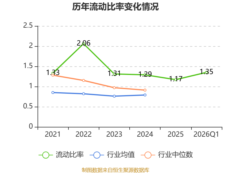 2026年第一季度,公司流动比率为1.35,速动比率为0.79。