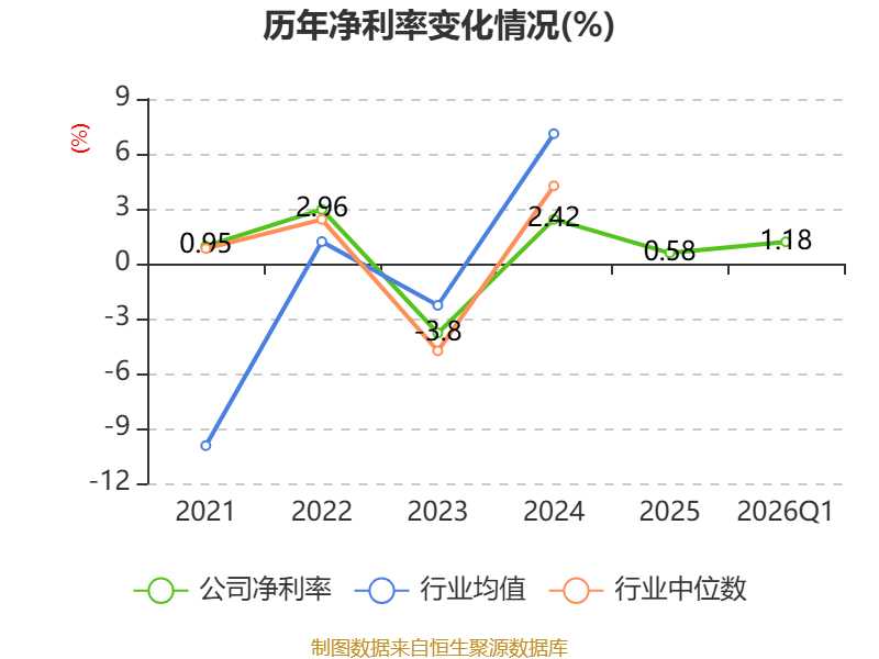 盈利能力方面, 2026年一季度公司加权平均净资产收益率为0.87%,同比下降1.11个百分点。公司2026年第一季度投入资本回报率为0.66%,较上年同期下降0.63个百分点。