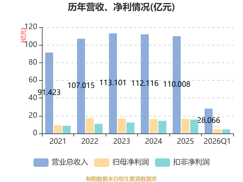 盈利能力方面, 2026年一季度公司加权平均净资产收益率为4.08%,同比下降0.67个百分点。公司2026年第一季度投入资本回报率为3.56%,较上年同期下降0.59个百分点。