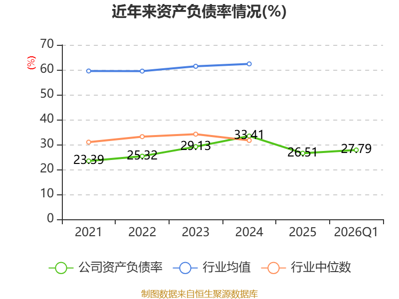 负债重大变化方面,截至2026年一季度末,公司应付债券占公司总资产的5.55%,上年末为0;长期借款较上年末减少47.69%,占公司总资产比重下降3.08个百分点;应付票据及应付账款较上年末减少15.42%,占公司总资产比重下降0.79个百分点;预收款项较上年末增加225.01%,占公司总资产比重上升0.77个百分点。
