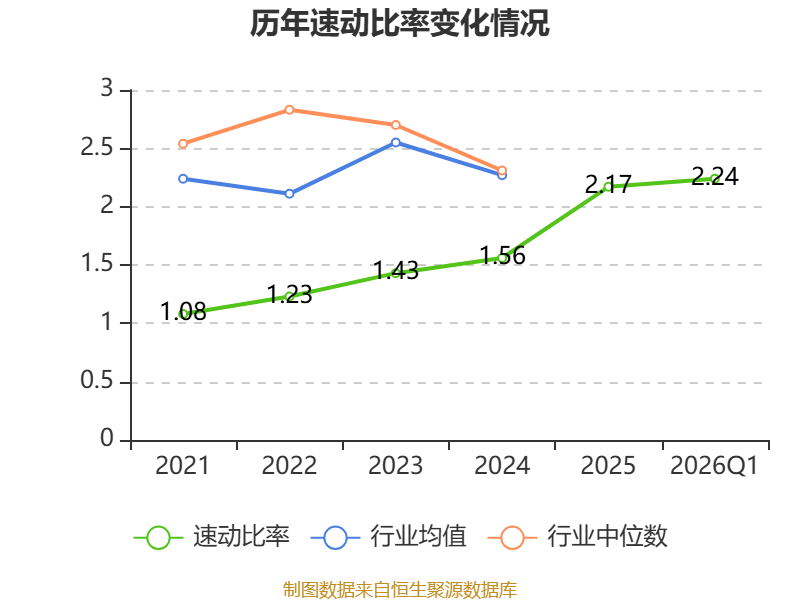 2026年第一季度,公司流动比率为2.36,速动比率为2.24。