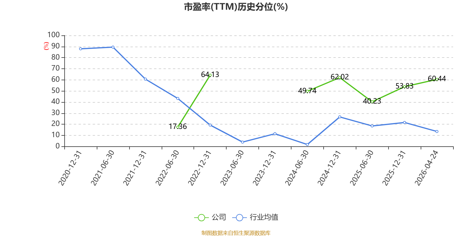市盈率、市净率为负时,不显示当期分位数,会导致折线图中断。