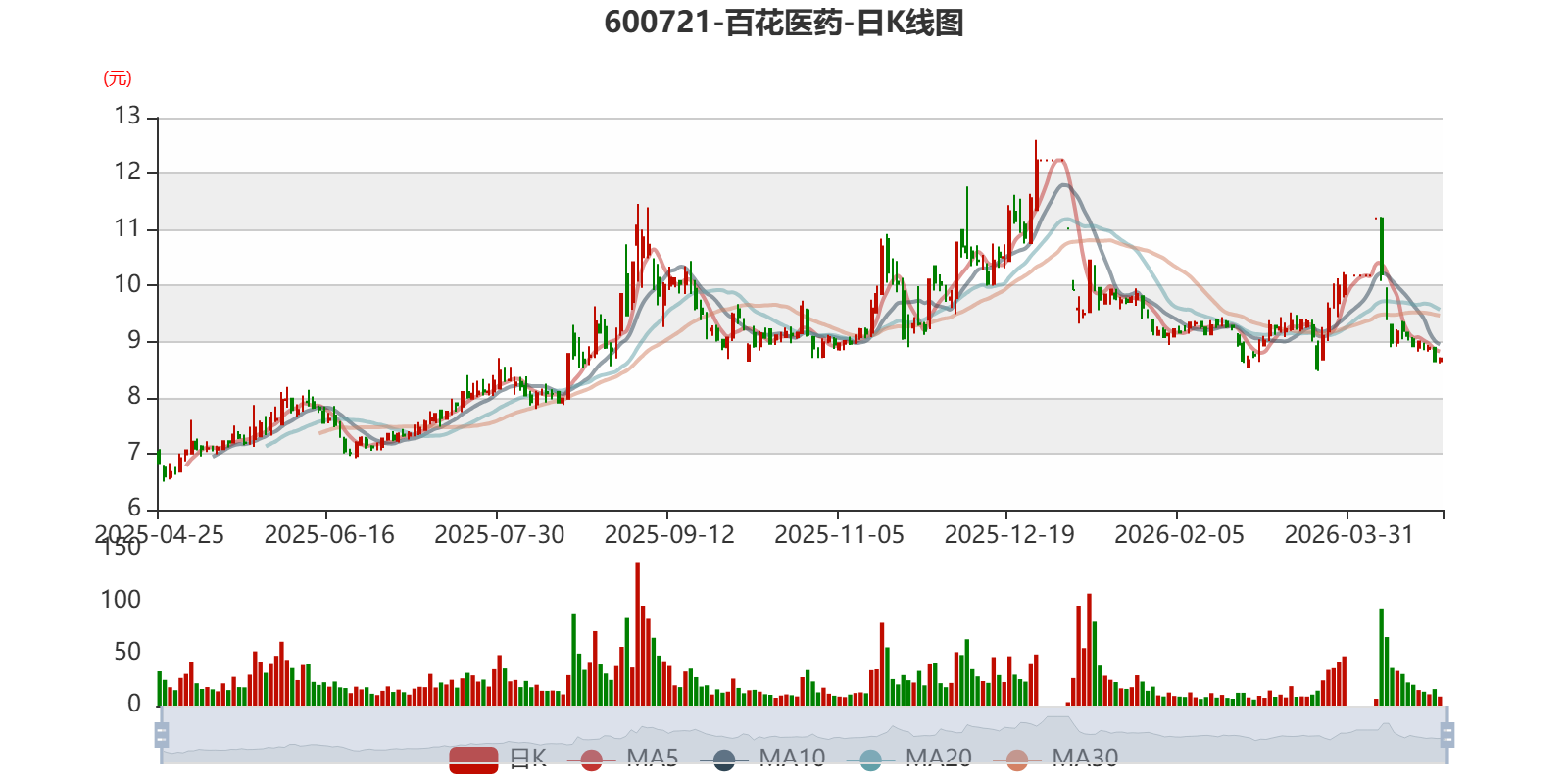 以4月24日收盘价计算,百花医药目前市盈率(TTM)约为125.73倍,市净率(LF)约4.14倍,市销率(TTM)约9.33倍。