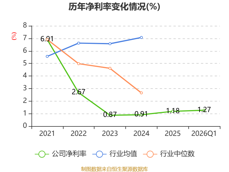盈利能力方面, 2026年一季度公司加权平均净资产收益率为0.81%,同比上升0.12个百分点。公司2026年第一季度投入资本回报率为0.6%,较上年同期下降0.05个百分点。