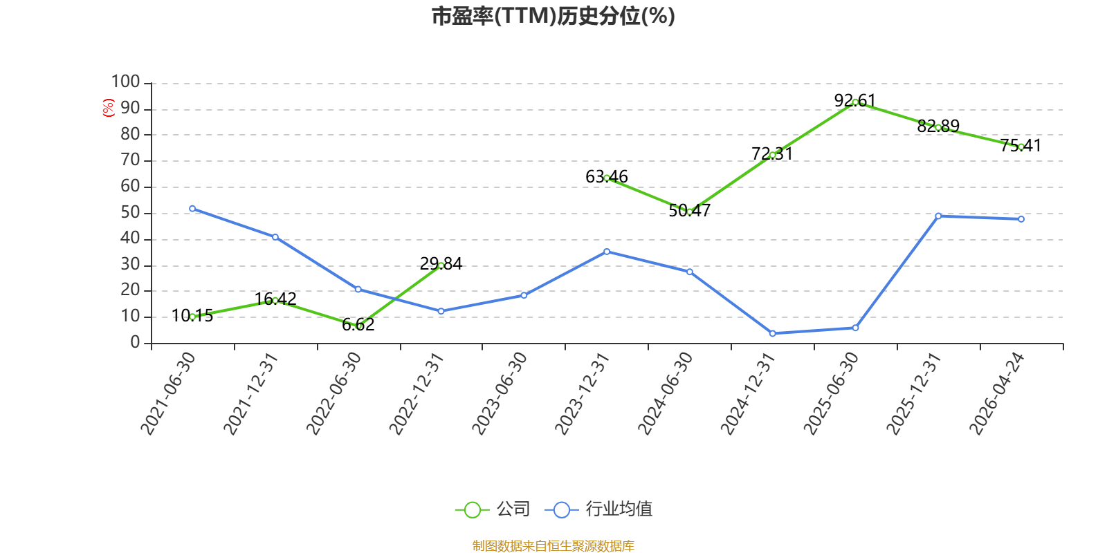 市盈率、市净率为负时,不显示当期分位数,会导致折线图中断。