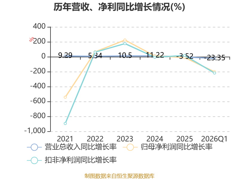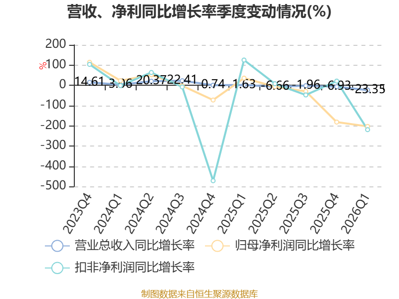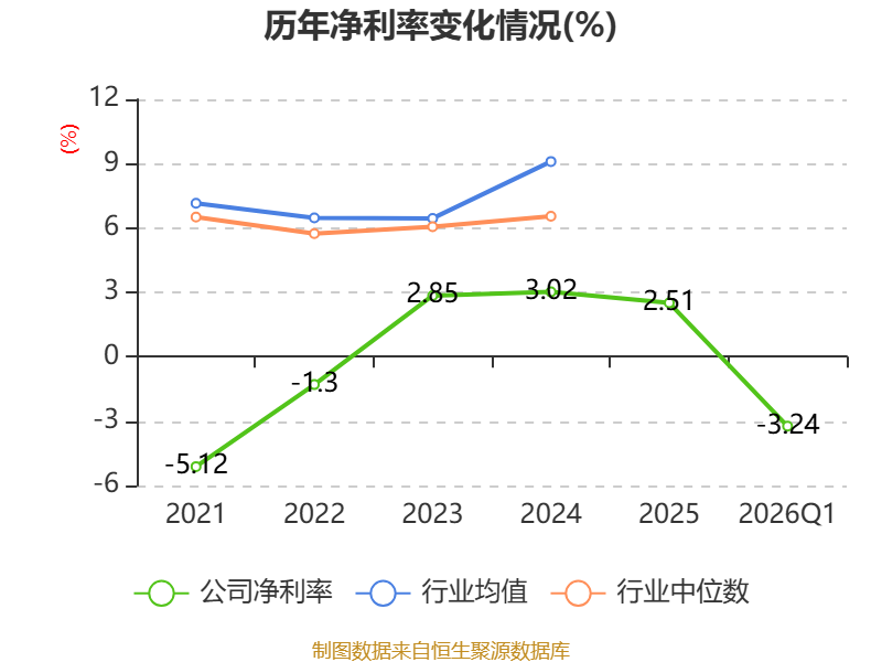 盈利能力方面, 2026年一季度公司加权平均净资产收益率为-1%,同比下降1.99个百分点。公司2026年第一季度投入资本回报率为0.35%,较上年同期下降0.67个百分点。
