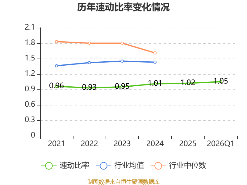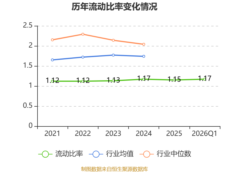 2026年第一季度,公司流动比率为1.17,速动比率为1.05。