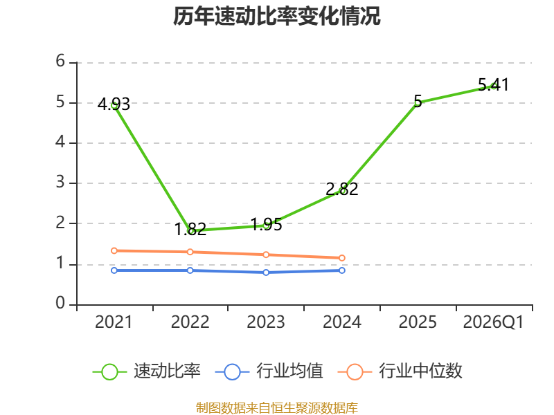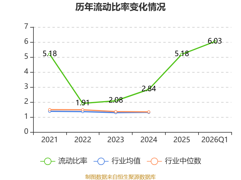 2026年第一季度,公司流动比率为6.03,速动比率为5.41。