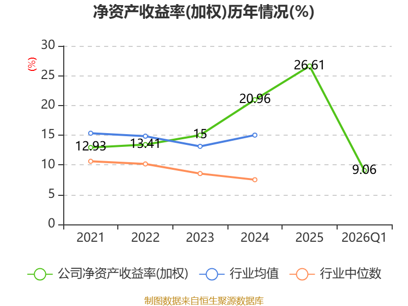 盈利能力方面, 2026年一季度公司加权平均净资产收益率为9.06%,同比上升3.57个百分点。公司2026年第一季度投入资本回报率为6.24%,较上年同期上升2.49个百分点。