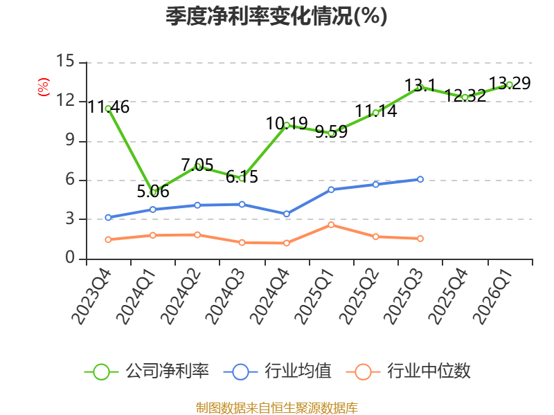 资产重大变化方面,截至2026年一季度末,公司货币资金较上年末增加34.05%,占公司总资产比重上升3.41个百分点;存货较上年末增加1.51%,占公司总资产比重下降1.78个百分点;其他流动资产较上年末减少6.17%,占公司总资产比重下降0.8个百分点;交易性金融资产合计较上年末增加20.62%,占公司总资产比重上升0.57个百分点。