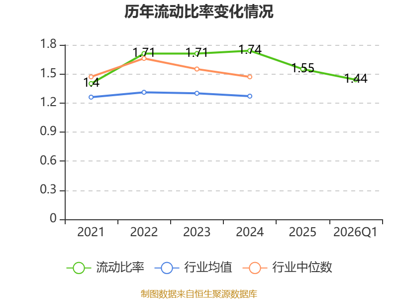 2026年第一季度,公司流动比率为1.44,速动比率为0.97。