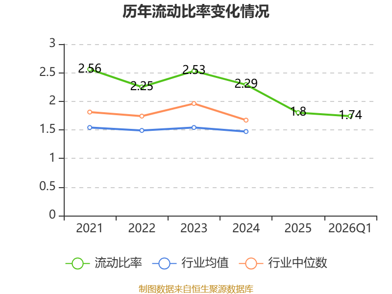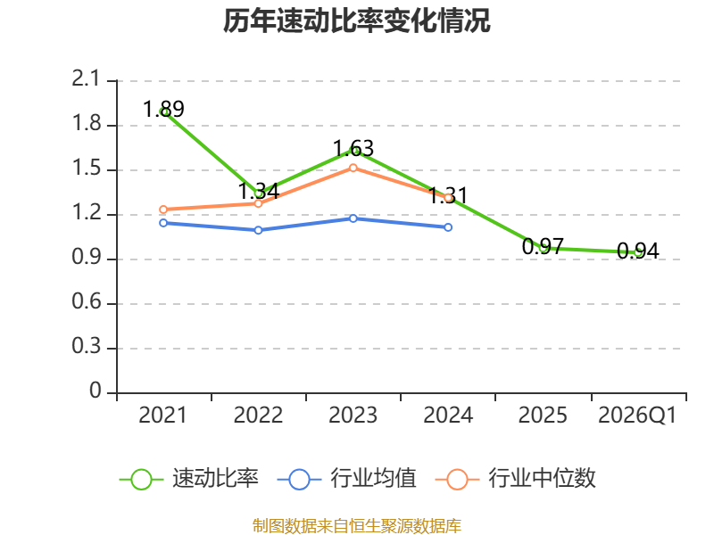 2026年第一季度,公司流动比率为1.74,速动比率为0.94。