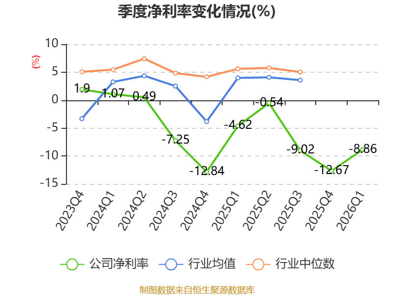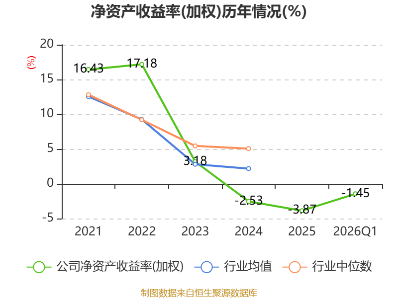 盈利能力方面, 2026年一季度公司加权平均净资产收益率为-1.45%,同比下降0.93个百分点。公司2026年第一季度投入资本回报率为-1.54%,较上年同期下降0.84个百分点。