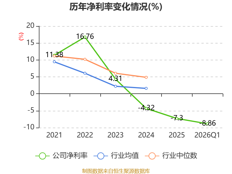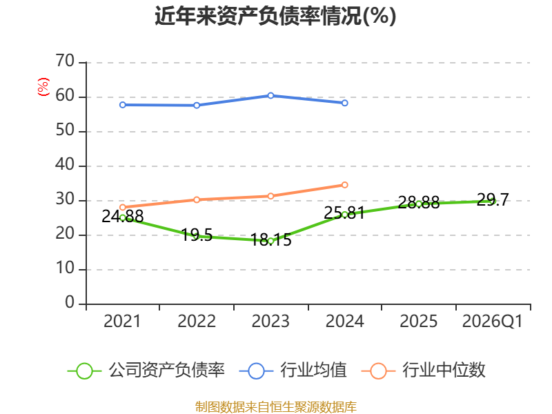 资产重大变化方面,截至2026年一季度末,公司在建工程合计较上年末减少33.48%,占公司总资产比重下降8.33个百分点;固定资产较上年末增加32.09%,占公司总资产比重上升7.49个百分点;交易性金融资产合计较上年末减少52.12%,占公司总资产比重下降3.97个百分点;货币资金较上年末增加14.78%,占公司总资产比重上升3.02个百分点。